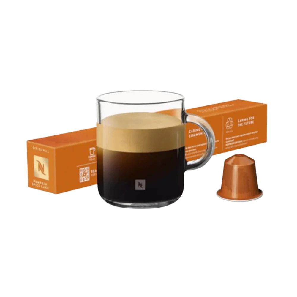 This limited edition Nespresso capsule, Pumpkin Spice Cake, provides a delectable indulgence with its rich blend of various spice notes, resulting in a creamy and satisfying experience.